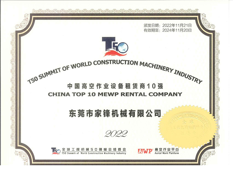東莞市家鋒機(jī)械有限公司成立于2016年,是專業(yè)的高空作業(yè)平臺(tái)租賃、銷售服務(wù)商,擁有徐工、中聯(lián)、吉尼、捷爾杰等國內(nèi)外知名品牌的高空作業(yè)設(shè)備八千多臺(tái),連續(xù)四屆榮膺“中國高空作業(yè)設(shè)備租賃商十強(qiáng)企業(yè)”及“中國高空作業(yè)平臺(tái)租賃業(yè)十大品牌”,并于2021年首次榮膺“中國工程機(jī)械租賃商十強(qiáng)”,是立足華南、輻射全國、規(guī)模大、服務(wù)優(yōu),極具競(jìng)爭(zhēng)力和影響力的企業(yè)。短短幾年,已相繼與世界機(jī)械巨頭徐工集團(tuán)、中聯(lián)重科達(dá)成戰(zhàn)略合作。